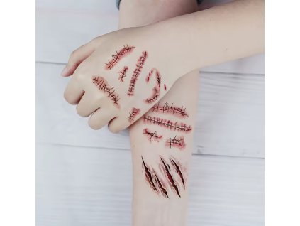 Halloween - jazvy - škrabance - karneval - dočasné tetovanie Hallowenský realistický make up za 1 minútu ! - farebné - balenie obsahuje 4 jazvy a 4 škrabance - možnosť...