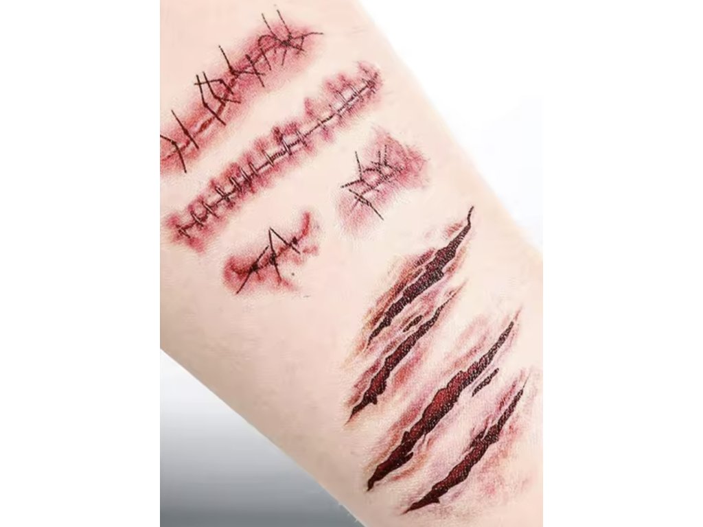 Návod na aplikáciu Halloween - jazvy - škrabance - karneval - dočasné tetovanie: