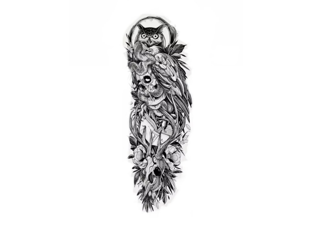 Rukáv - Zvieratá - Smrťka - Sova - Had - Dočasné tetovanie