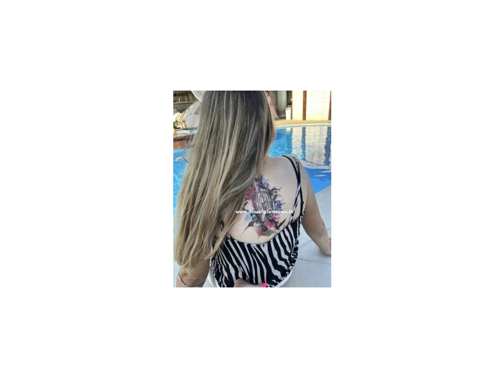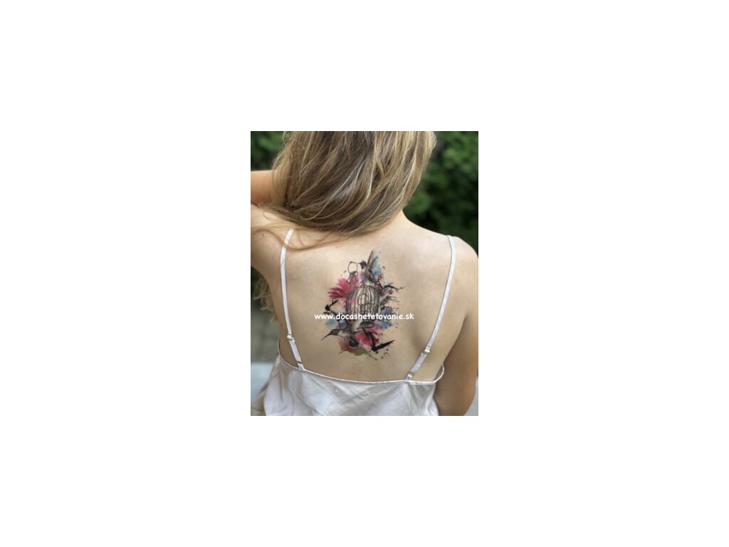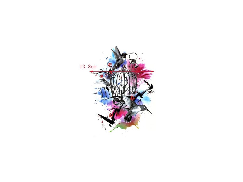 Vtáky - klietka - kľúče - farebné dočasné tetovanie