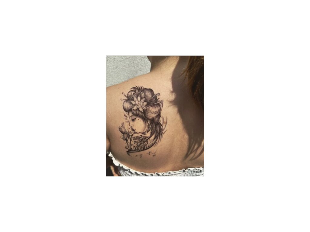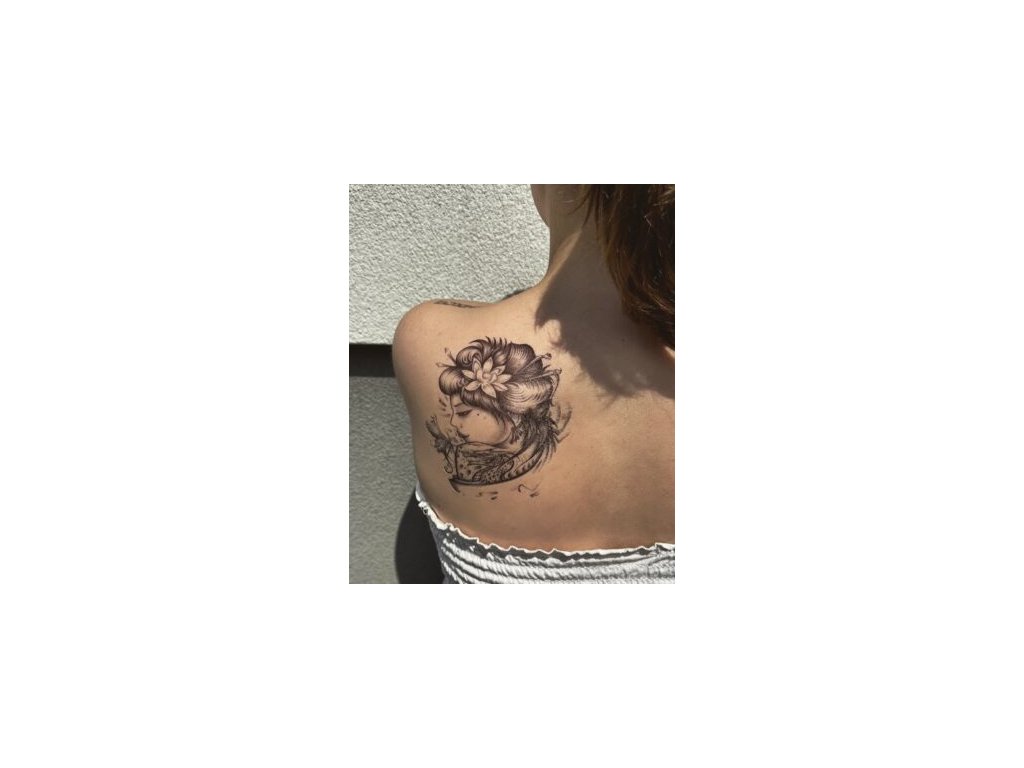 Žena - Postava - Lotosový kvet - Japonsko - Dočasné tetovanie